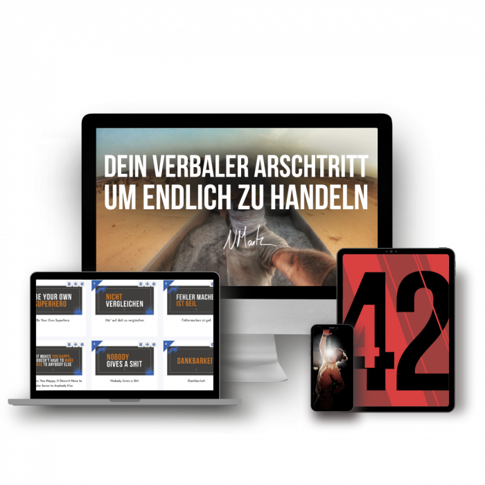 Im Videokurs erkläre ich dir anhand 42 Learnings, wie du dein Mindset schärfst, stärkst und endlich handelst! Du bist eher ein Leser, brauchst die Infos schwarz auf weiß? Keine Sorge, du erhältst alle Infos als übersichtliches Paper zum Nachlesen.